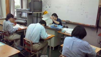 今年度の「京都府クリーニング師免許国家資格試験」の日程が,10月18日(日)に決まりました。本校の生活産業科からは,例年数名の生徒が受験しており,合格ライン突破にむけて特別カリキュラムに取り組みます。今年も,応募者は夏休み気分を早々に返上して,衛生法規や公衆衛生などの学科試験対策,繊維の鑑別や洗濯物の仕上げ技術(電気アイロン実技)などの実地試験対策に,時間を惜しんで取り組んでいます(写真参照)。人事を尽くして天命を待つ…,まさに職業学科ならでは学びの一コマです。