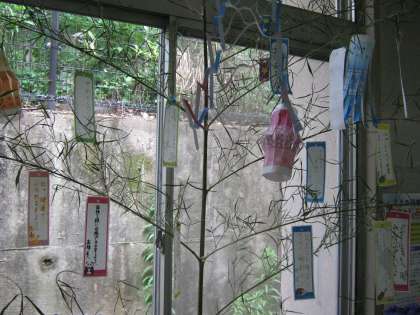 7日は七夕でした。今年も素敵な笹飾りが立てられました。折り紙で作られた天の川や吹き流しが風に揺られてとても美しいです。「みんながかぜをひきませんように」「デザイナーになりたい」「英検3級に合格できますように」等様々な願いが短冊に書かれています。みんなの願いが叶いますように・・・。