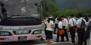 ハウステンボスでの楽しくてしんどい?スタンプラリーも無事終了。少し疲れた様子も見えますが,おみやげも各自買い込んで,旅館に向けて出発です。