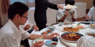 夕食は大皿料理です。今日一日活動して,お腹はペコペコ。お箸が進みます。栄養補給をしっかりして,食事の後はお風呂です。大浴場でゆったりと手足を伸ばして,今日一日の疲れを癒します。