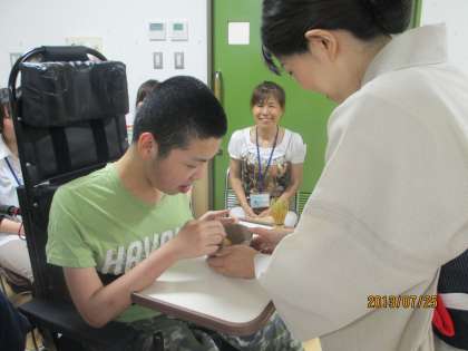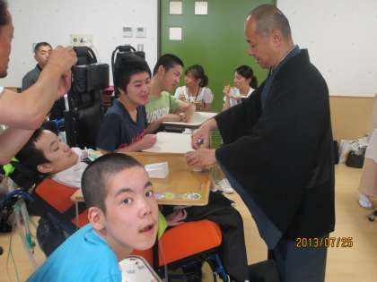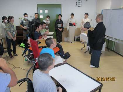 7月25日夏期休業の初日普通科では,宇多野病院1病棟プレイルームで高等部を中心に「茶道教室」が行われました。