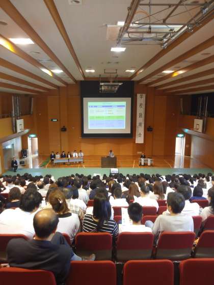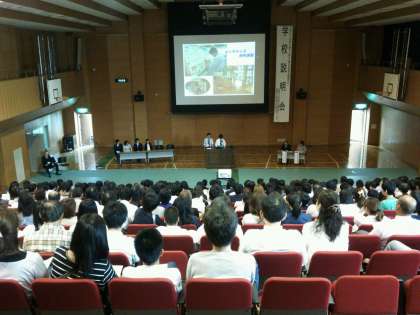 5月25日(日)学校説明会が総合教育センターにて行われました。中学校3年生と関係者を対象に第1部、中学校1・2年生と関係者を対象に第2部が行われました。どちらもホールいっぱいとなり、参加者の合計は520名でした。職業学科についての説明の後、3校より学校生活についての説明がありました。本校からも生徒代表が「夢をもってがんばりましょう」と呼びかけました。6月からオープンキャンパスが始まります。皆さんの参加をお待ちしています。