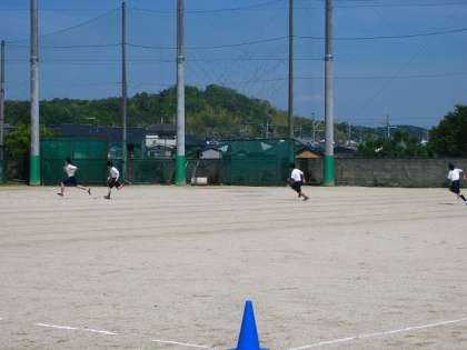 夏を感じさせるような青空の日,生活産業科の生徒たちは,6月に行う陸上記録会に向けて練習をしています。体育の時間に,堀川高校の嵯峨野グランドを借り思いっきり身体を動かしています。タイムを計りこれまでの記録と比べて一喜一憂しています。記録会は6月17日(火),予備日は18日です。当日を目指してがんばっています。