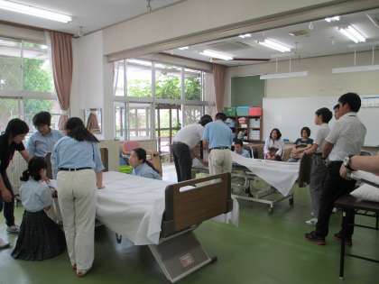 6月16日(月)27年度入学に向けた「オープンキャンパス」の第一回を行いました。多数のご参加ありがとうございました。中学校3年生と保護者・教職員の方が対象です。日程や学習内容説明のあと,専門教科を見学・体験してもらいました。専門教科では,本校の2年生・3年生が手順を説明しながら,丁寧に教えている姿がありました。体験をとおして「おもしろさ」や「むずかしさ」を感じてもらえたでしょうか。また,お待ちしています。