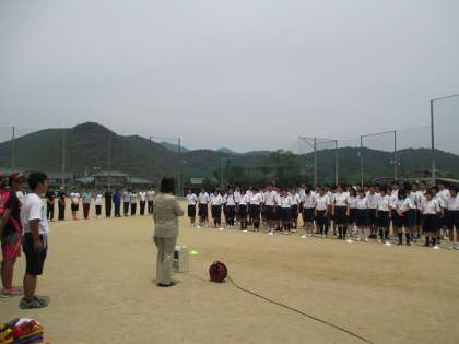 6月17日(火)陸上記録会。各競技がスムースに進行していきました。学年代表によるリレーも行い、大声援のなか3年生が見事にトップでゴール。閉会式では、堀川グランドの方に、保護者の方々に、介護等体験の皆さんに、「ありがとうございました!」と大きな声であいさつをしました。そして、頑張った仲間たちに「拍手」を送り締めくくりました。