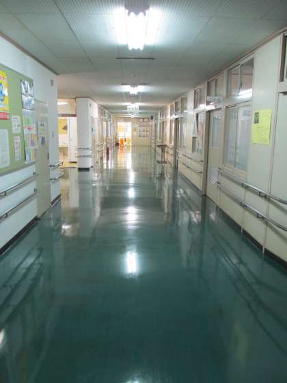 生活産業科夏学習の専門教科メンテナンスの授業で生徒が廊下や教室のワックスがけをしてくれました。