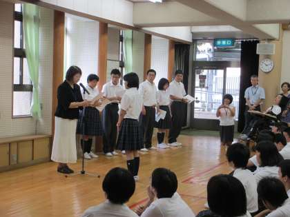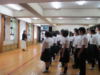 8月25日(月)夏季休業が終わり,本日より平常授業が始まりました。全校集会では,児童生徒が元気な姿で集合しました。学校長より「今を大切に,目の前の課題に一生懸命取り組んでいきましょう」とお話がありました。また,夏季休業中の各大会でがんばったことを振り返り表彰をしました。交歓会「卓球バレー」では,1チームが優勝,4チームが準優勝でした。8月24日(日)の水泳大会では,自由形25M(男・女)平泳25M(男)背泳25M(男)背泳50M・100M(女)が1位のメダルを獲得しました。2位も3名でした。中でも,平泳25M(男)・背泳50M(女)・背泳100M(女)は大会新記録を出す見事な泳ぎでした。また,混合リレーでも4名が力を発揮し,第1位を獲得しました。がんばりに拍手!皆でたたえ明日からの前向きパワーに変えていきたいものです。