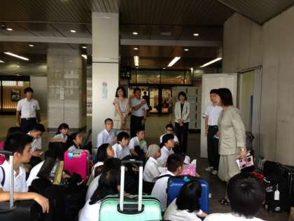 8月26日(火)生活産業科2年生が修学研修旅行に出発しました。京都駅に集合し,団結式をして新幹線ホームへ移動しました。移動や乗車の練習をし見通しを持ってスムースに行動でき,全員元気に出発しました。