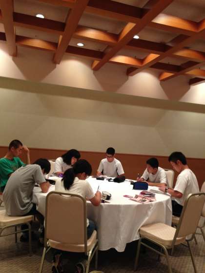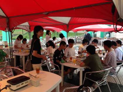 8月28日(木) 夕食はバーベキューです。一日働いた後の食事は,とてもおいしかったです。いよいよ,明日が最終日になりました。ミーティングで,今日の振り返りをしてこれからの学習にいかしたいと思います。3日目のすべての活動を無事終了しました。