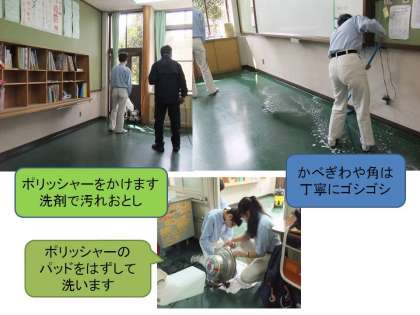 メンテナンスで教室のワックスがけをしています。教室をすっきりピカピカにして新年度をむかえます。床を清掃したあと,洗剤でポリッシャーをかけます。隅まで磨き水分を吸い取りもう一度モップがけをし乾燥させます。乾いたらやっとワックスがけです。すっかり乾燥するまで,しばらくは立入禁止です。あすの朝にはきれいな教室に入れます。力を合わせて仕上げたメンテナンス2年生の皆さん,ありがとう!