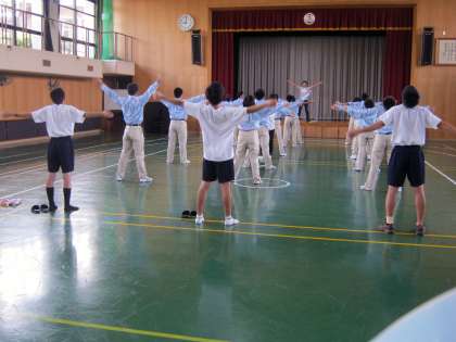 高等部生活産業科1年生とラジオ体操から一緒に行い,その後メンテナンス作業に取り組みました。