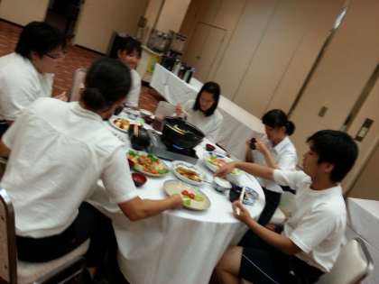 入館式を行い,お待ちかねの夕食です。