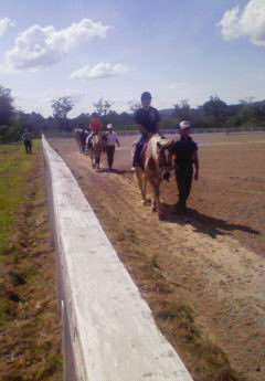 暑い中ですが,風はやはり高原の風です。日陰に入って風に当たるといい気持ちです。午後から,職業体験の二つめのライディングパークでの体験です。背の高い馬の上から見る景色は,きっとすばらしかったでしょう。