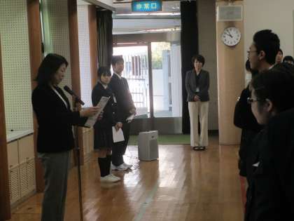 その後の表彰では,11月に行なわれた「ビジネス文書検定」と1月8日に受けた「ぼうさい甲子園」の表彰を行ないました。