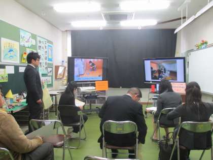 京都市立病院分教室の紹介ビデオと中学部の授業をテレビ会議システムで中継し放映しています。