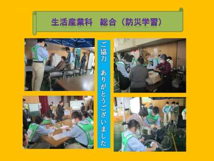 生活産業科1年,2年の防災学習では,参観者の皆さんにも避難者としてご協力いただき,生徒たちが中心となり避難所運営を行ないました。