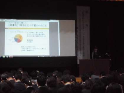 菊地先生の講評では,2日間の授業の様子を写真を交えてお話いただいた後,3年間の研究をまとめていただきました。