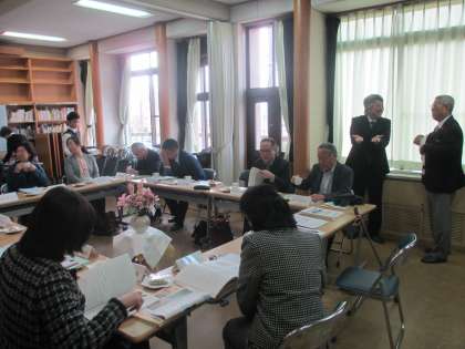 本校学校運営協議会会長の朝野浩立命館大学教授をはじめとして,各委員の皆様にお忙しい中ご出席いただきました。
