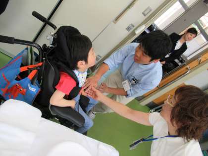 そこへやってきたのは,小学部の児童。「手浴の授業をしているのでどうですか?」