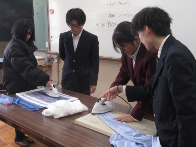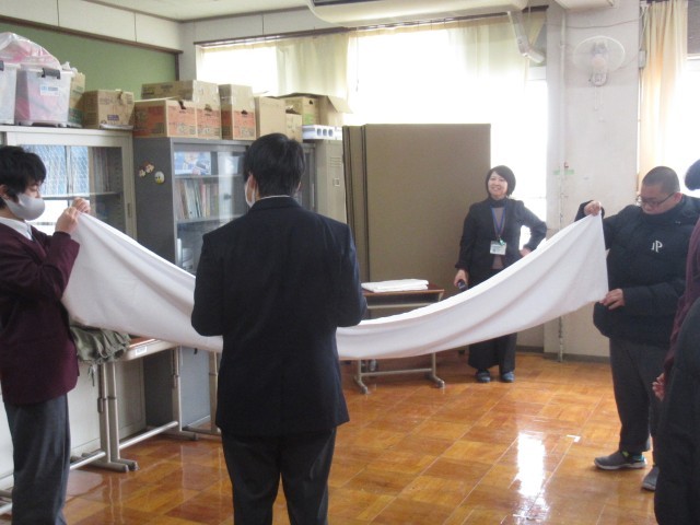 梅津中学校の育成学級の生徒と交流学習を行いました。それぞれの生徒の自己紹介や鳴滝総合の学校紹介をおこないました。その後鳴滝の生徒たちが日々学んでいる、これからの生活にも役立つスキルを見せて、実際に中学生にも体験してもらいました。帰るころには生徒同士すっかり打ち解けて、自然に学校生活や休日の過ごし方などの話をする姿が見られました。後日届いた中学生からのお礼の手紙には、「たくさん話ができて楽しかったです」や「ハンカチのアイロンがけが難しかったです」など交流の感想が書かれていました。交流学習に参加した生徒にもこの手紙を共有したところ、次におこなう交流学習での改善点などを自分たちで話し合っていました。