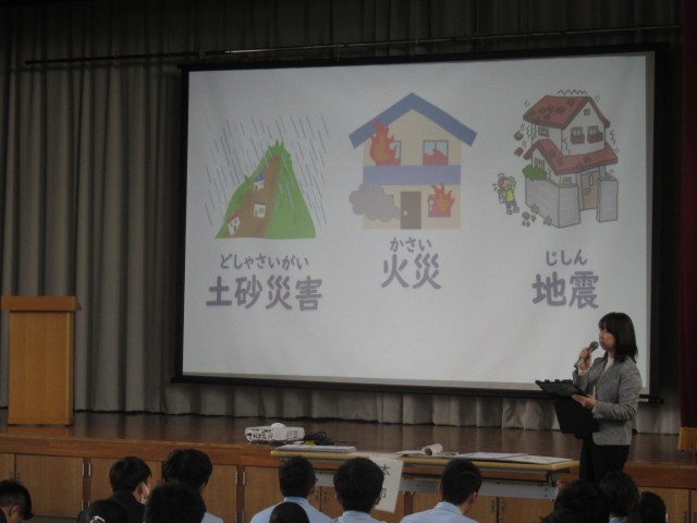本日地震を想定した避難訓練を行いました。児童生徒たちは実際に地震がおこったことを想定して真剣に訓練に参加することができていました。消防隊の方の講評では、避難開始から終了までの時間がとても早かったことや、避難する際に児童生徒が私語やふざける様子がなかったことを褒めていただきました。今回の訓練を生かし、いつどのような場合に災害が起こった時でも冷静に判断し対応していけるように、学校として今後も取り組みを行っていきたいと思います。