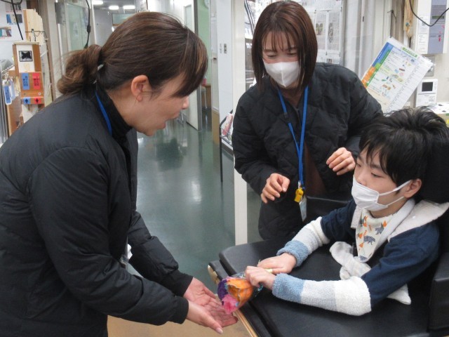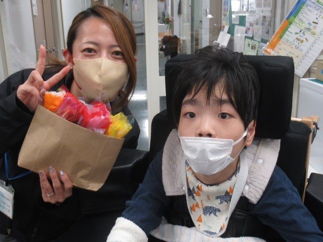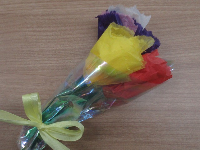 手作りのお花を届けに来てくれました。明日は卒業式です。