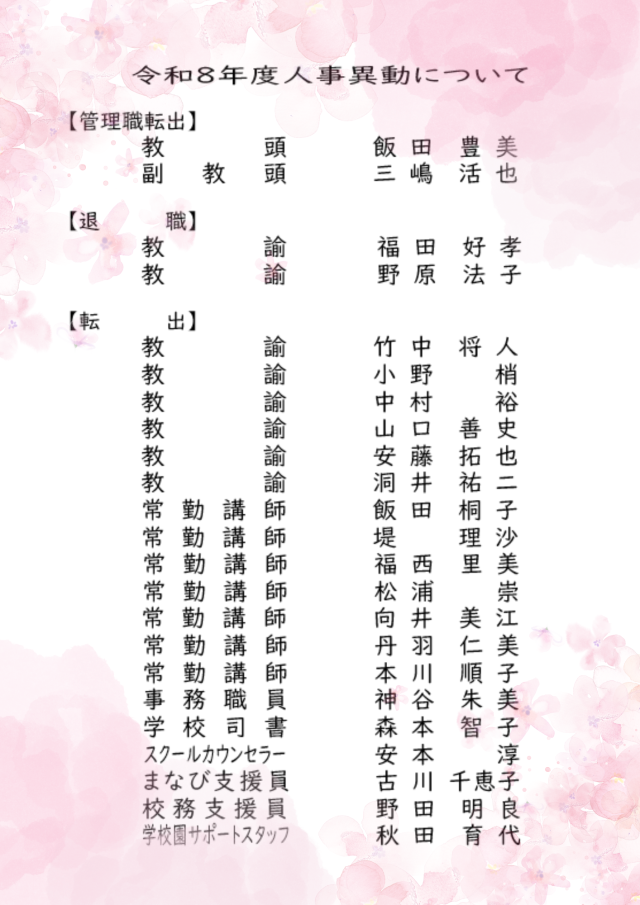 退職・転出教職員のお知らせ