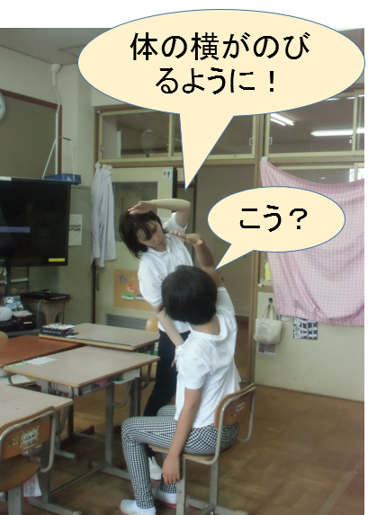 本校では,月に1回程度の割合で,京都市地域リハビリテーション推進センターのPT(理学療法士)さんとOT(作業療法士)さんに来校していただき,助言をいただいています。