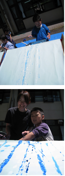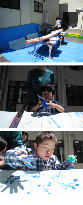 今日は傾斜装置を使って,外庭で造形活動をしました。