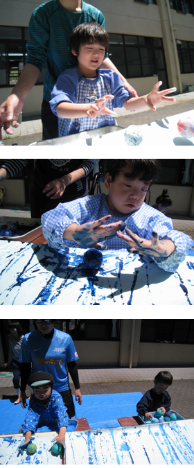絵の具をつけたボールをコロコロ♪