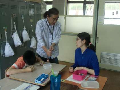 本校では,月に1回程度の割合で,京都市地域リハビリテーション推進センターのPT(理学療法士)さんとOT(作業療法士)さんに来校していただき,助言をいただいています。