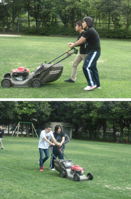 高等部3年の学年ライフ「環境・美化プロジェクト」では,今日からグランドの芝刈りに取り組みます。