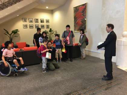 退館式でお礼を言って、ワーク製品をプレゼントしました。今から、神戸港へ行って、船に乗ります。