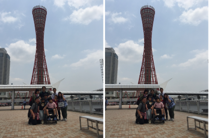 神戸ベイクルーズが終わり,神戸ポートタワー前で集合写真を撮りました。