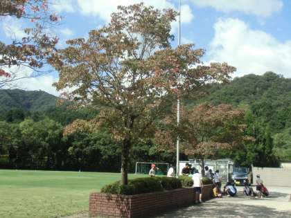 しかし,吹く風は気持ちよく,運動場のまわりでは,色づき始めた木もあります。