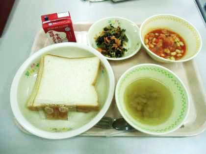 おおよそ週に一度,パンの日があり,今日の食パンのほかに,バターうずまきパン,ミルクコッペパン,味つけコッペパンなどのパンがあります。