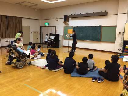 学校探検のあとは,ホールで楽しいコンサート!