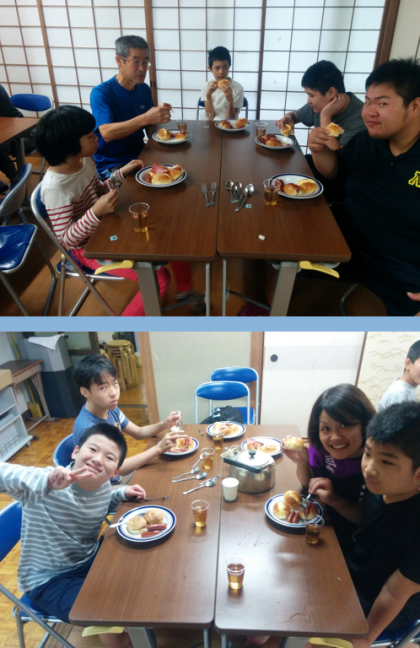 宿泊二日目の朝です。調理班と散歩班に分かれて朝の活動をしました。全員元気に朝を迎えられました。