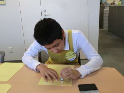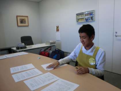 右京中央図書館で「生き方探究・チャレンジ体験」をしました。DVDやCDをケースに入れたり、プリントに判子を押したり、本にシールを貼ったり、プリントを綴じたり…。最終日は、午後からも体験。最後に職員さんに「これからも頑張ってください」と言われ、「はい!」とうれしそうに返事をしていました。