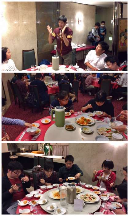 横浜中華街での夕食が始まりました。「みんなで食べるから美味しいです。」