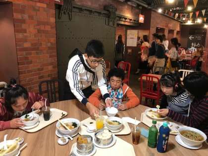 お昼は赤れんがの崎陽軒でランチ!シューマイがセットでついてきて、みんなパクパクと美味しそう。