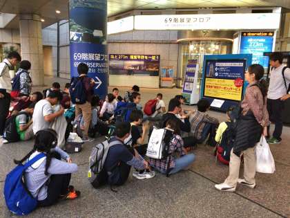 ランドマークタワー前に全グループ、集合しました。