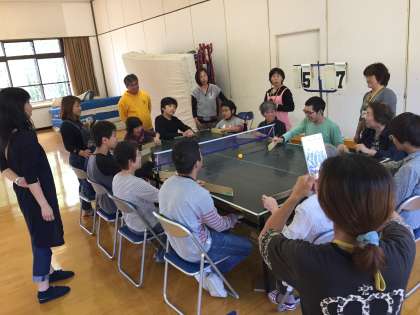 西総合のホールで卓球バレーをすることにも慣れ、自分のポジションもカードを手ががりにスムーズに着席できます。