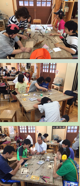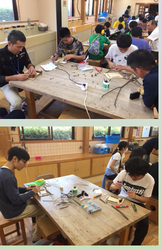 施設の周りにある木の枝や、どんぐりを拾って来て、創作しています。
