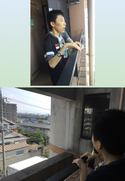 玄関を出て、一人で立って4階から景色を見ました。(2回目です)