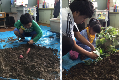 教室や訪問学級でも、いもほりをしました。
