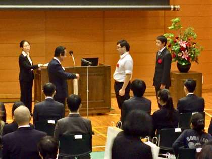 第1部では,勤続5年表彰状・感謝状贈呈式が行われました。本校の卒業生も含め,40名・35社が表彰状・感謝状を受け取られました。