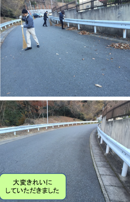 普段清掃しにくい部分の落ち葉も掃除していただき,大変綺麗になりました。