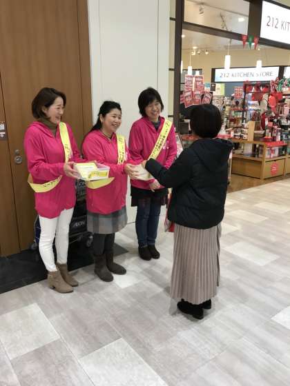 12月11日(月),「イオン幸せの黄色いレシートキャンペーン店頭PR」に行きました。今回は,PTA進路委員と本部役員のみなさんが10時から11時まで,店頭PR活動を行いました。