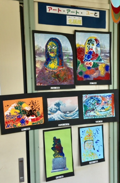 中学部2年生の教室前廊下に展示されている「アート・アート・ユーと 名画展」の作品紹介です。